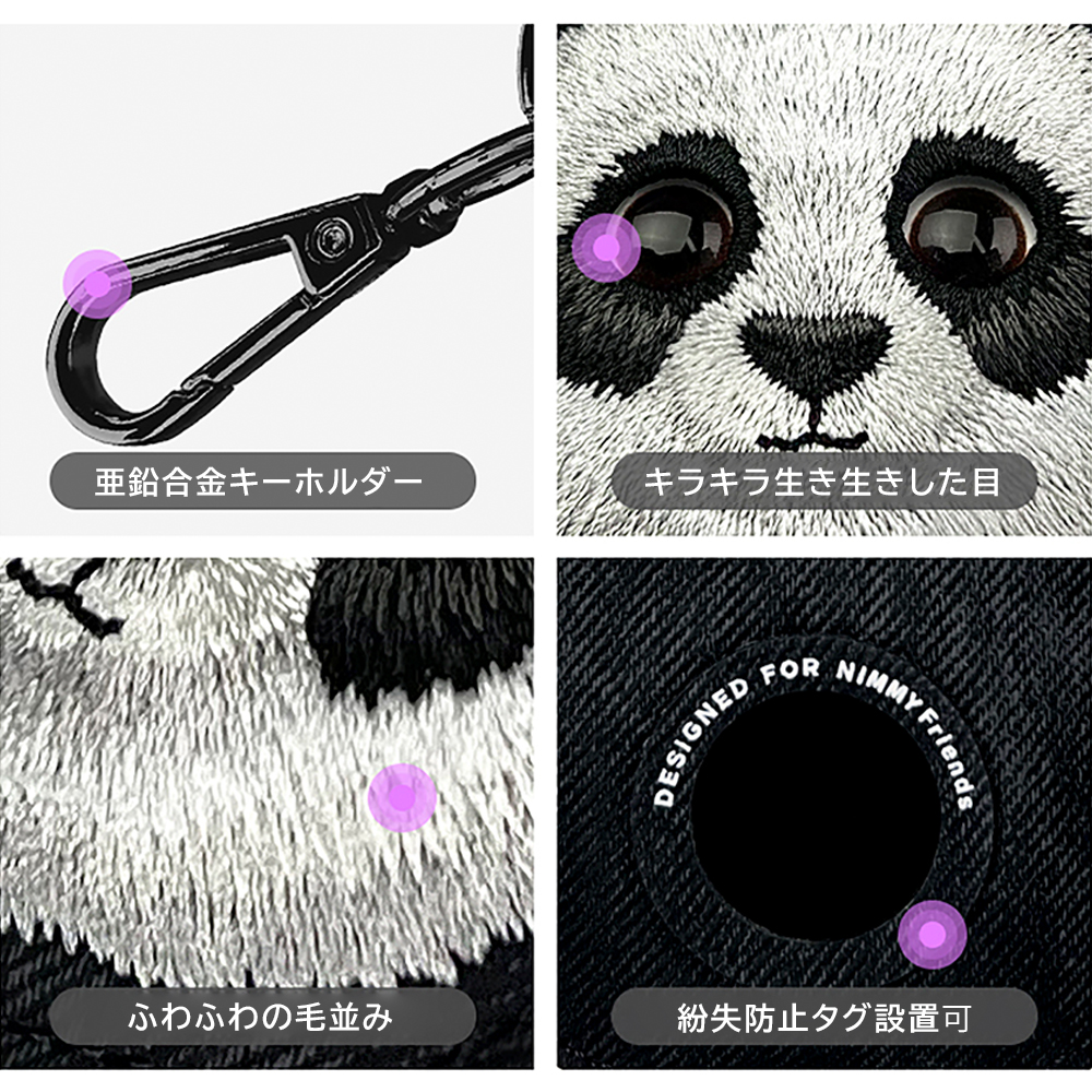 【新色入荷】可愛い動物 刺繍 キーホルダー Airtag AirTag保護ケース かわいい キーリング メンズ レディース パンダ ねこ うさぎ ブラック ピンク パップル イエロー アップル エアタグ 盗難防止 紛失防止 自転車 プレゼント 高級