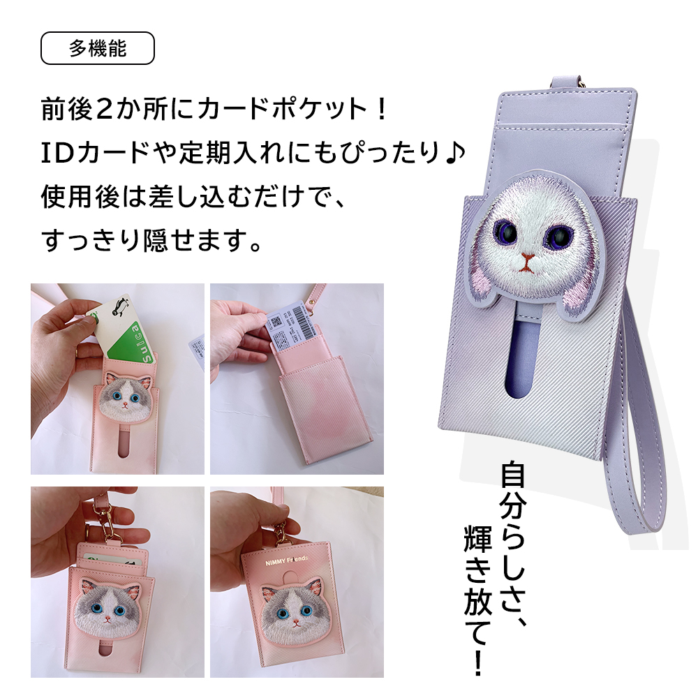 パスケース 定期入れ 面白い カード入れ 社員証 カード ケース id ネームホルダー かわいい レディース カードホルダー パンダ ねこ ブリシュー うさぎ ラグドール ギフト ブラック イエロー パープル ピンク idカードホルダー