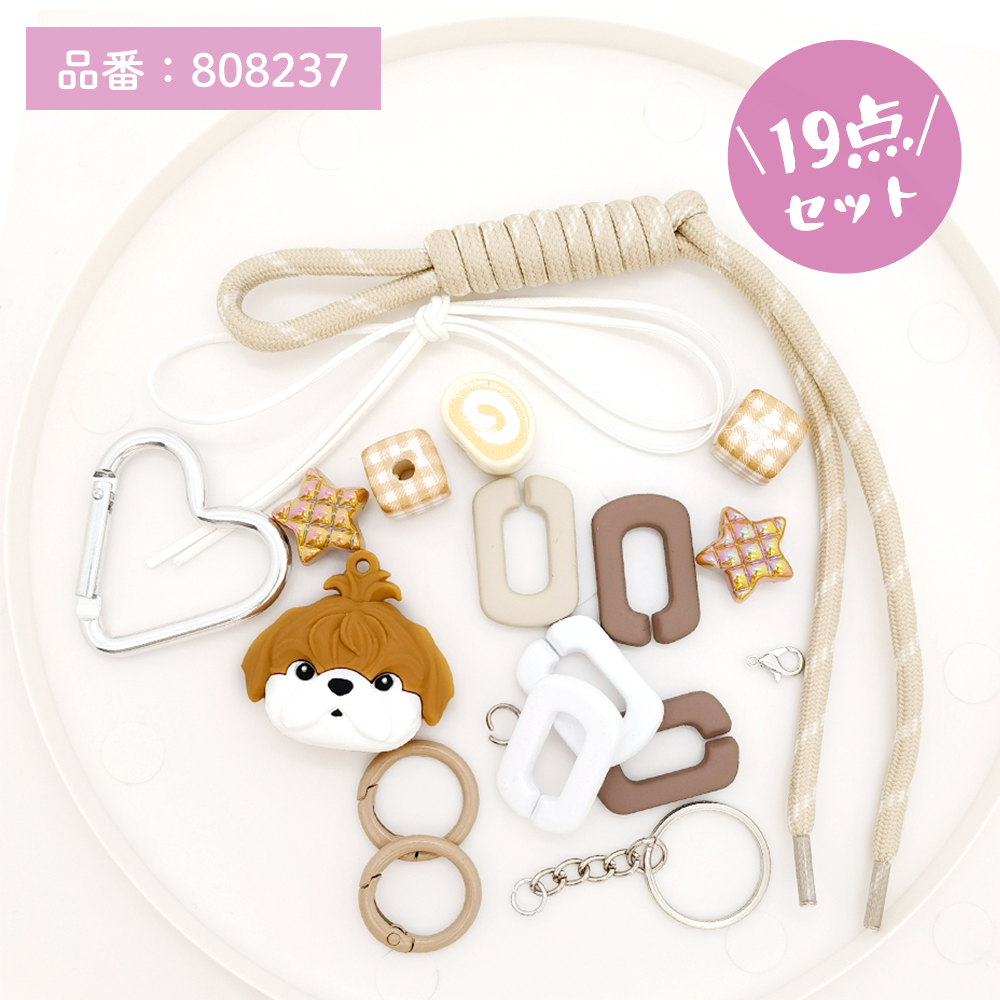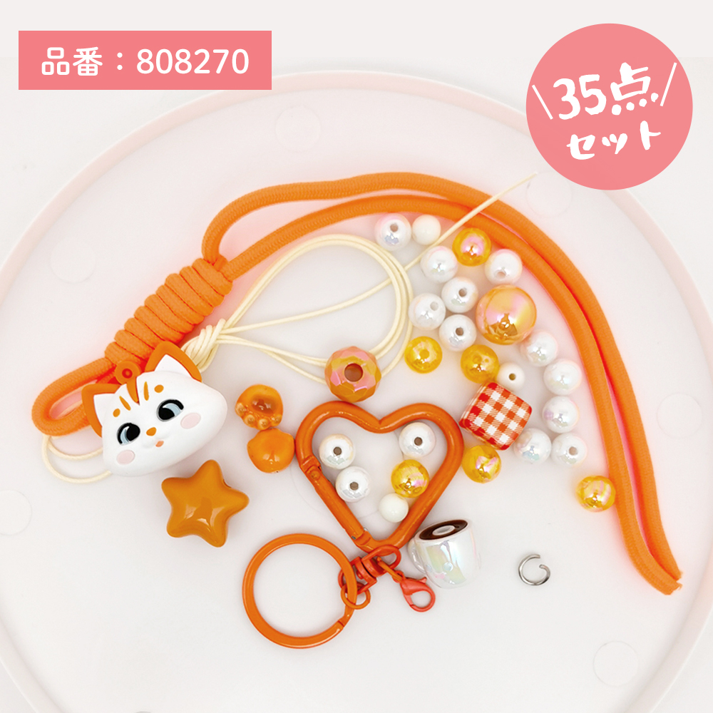 35点セットのバッグチャームDIYキットです。猫や犬の可愛いデザインパーツやビーズが豊富に揃っており、初心者でも楽しく手作りできます。